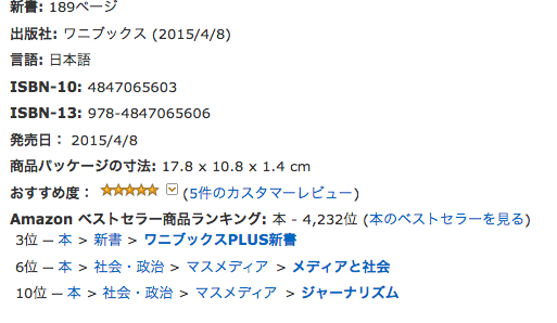 となっています。日販さんはさすが、わかってらっしゃる。ニュース初心者に向け、という点がポイントなんです。僕としてはむしろマンガとか自己啓発、ハウツーなどの並びに置いて欲しかった。サラリーマン一年生が最初に手にする本をイメージしたのであって、そんな小難しい学問をする本と一緒に並べて欲しくないのです。うーむ、こればっかりは仕方がないですね。とほほ。気のせいか一冊も減っていないような気がします。FBでいただいた情報によると、