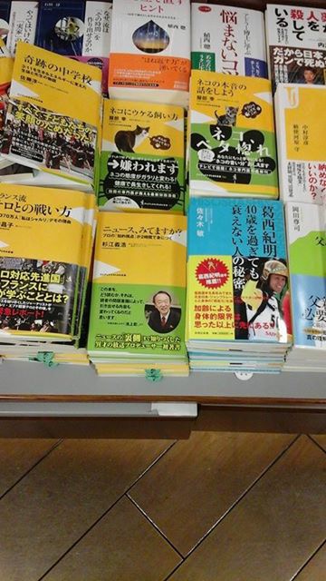そうそう!この感じ。「悩まないコツ」「40歳を過ぎても衰えない人の秘密」「ネコにウケる飼い方」この雑多な中に「ニュース、みてますか?」が紛れ込むと、しっくりくるのですよ。ほら、気のせいか紀伊国さんの平積みの方は、なんとなく減っている気がするじゃありませんか。新幹線の駅の売店に置けば、一番売れると思うのですが。。。やれやれ。本が書店に並んでからも、まだブツブツ悩んでいる著者でございます。
