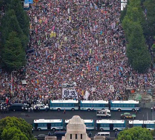 日頃はお上の言うことには逆らわず、羊のようにおとなしい日本の民衆が、さすがにこれはヤバイと立ち上がったのです。シャイな日本人がデモをするのは極めて異例のこと。平成に入って最大規模のデモとなりました。昭和30年代〜40年代の安保闘争が学生運動によるデモとして投石など暴力的だったのに対して、今回のデモはヘルメットの必要もない、非暴力に徹したものでした。